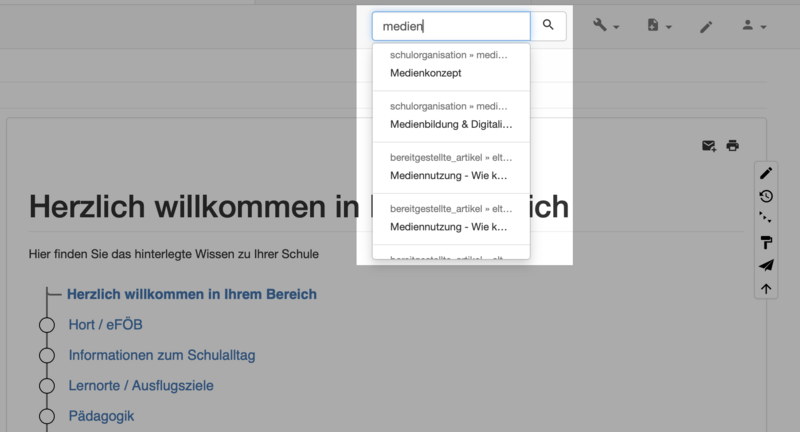 2. Tippt einfach einen oder mehrere Begriffe in dieses Feld ein (z. B. „Brandschutzordnung“, „Ausflugsziele Thema Natur“ oder „Medienkonzept“).